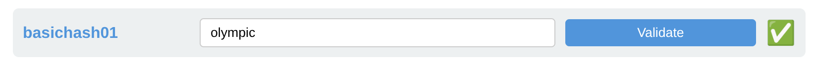 Locate the item corresponding to the hash we focused on here, basichash01, and enter the password in the text field. A green check mark ✅ will confirm you have the right password, e.g.: